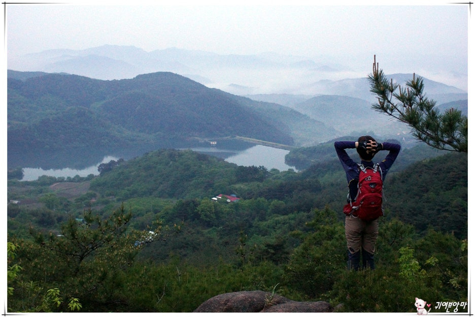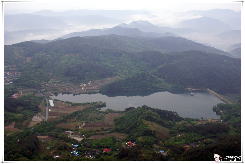 발 아래 대기저수지 저 멀리에는...살짜기 운무가 드리우고 있네요.