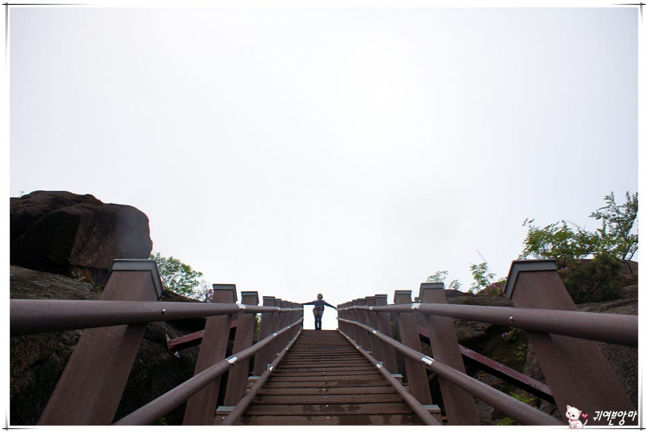 아래쪽에서 올라가는 계단길이...황매산 정상까지 올라가는데....?