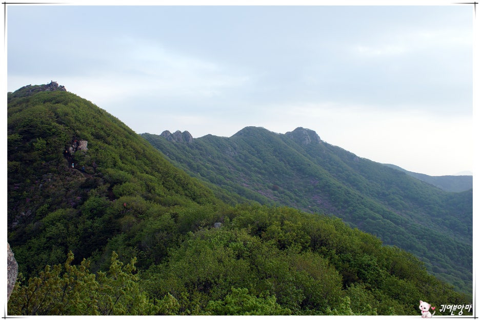 저 건너쪽은 순결바위가 있는 암릉길인데...오후에 내려올 하산길입니다.^^