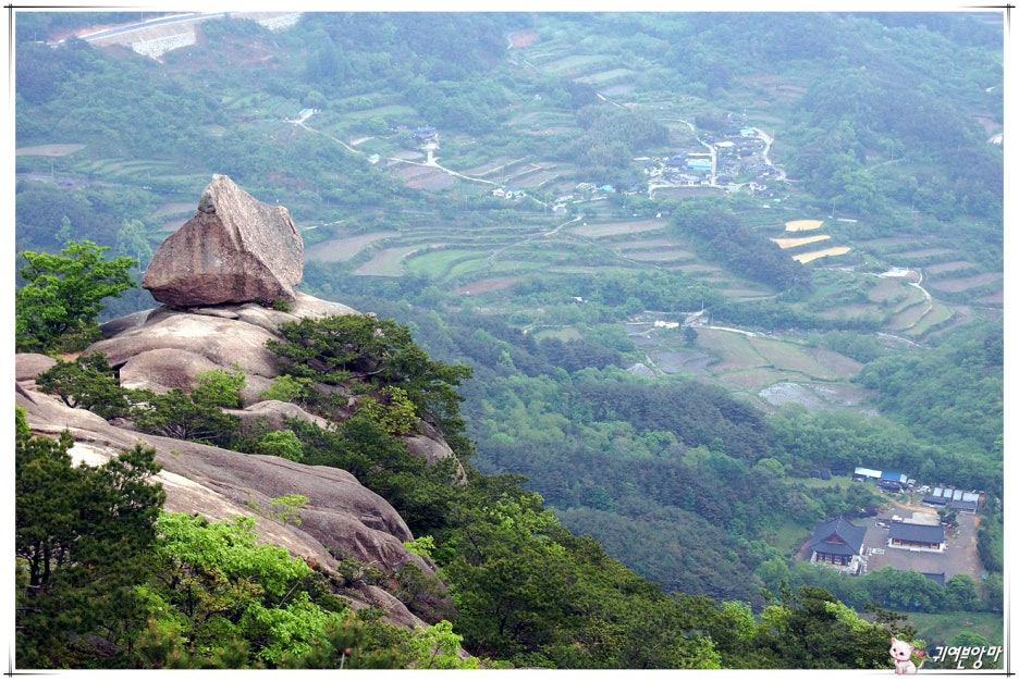 벼랑끝에 자리잡은 돛대바위와...오른쪽 아래엔 영암사가 내려다 보이고....