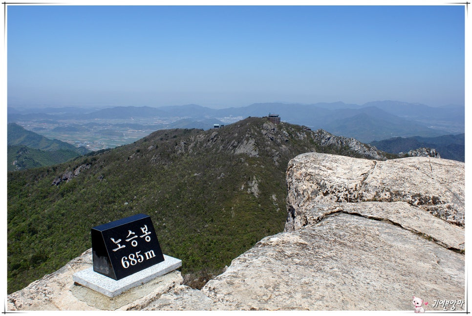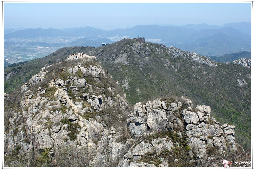 노승봉 정상에서...오심재 건너쪽 고계봉 전망대 건물들이 잘 보입니다.