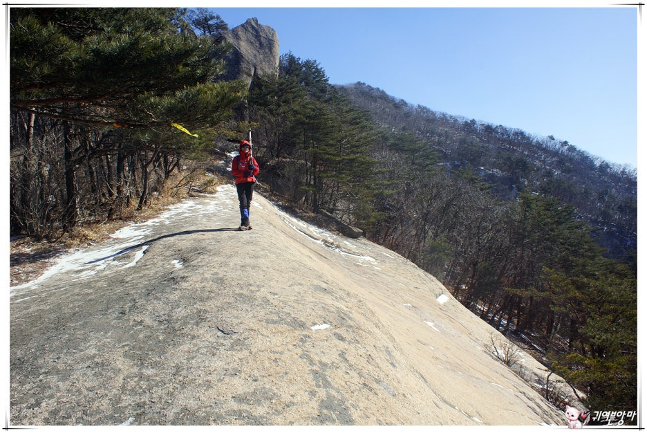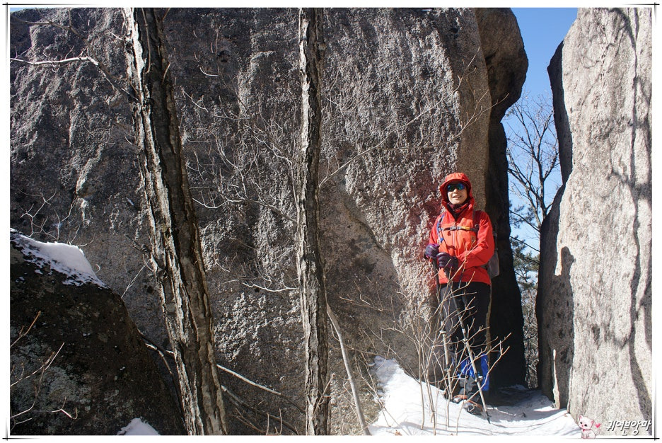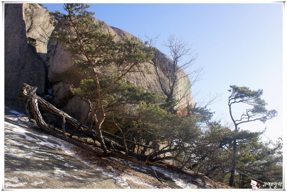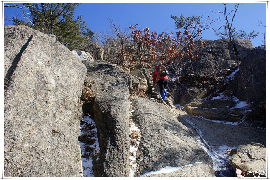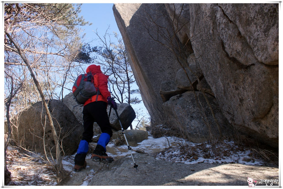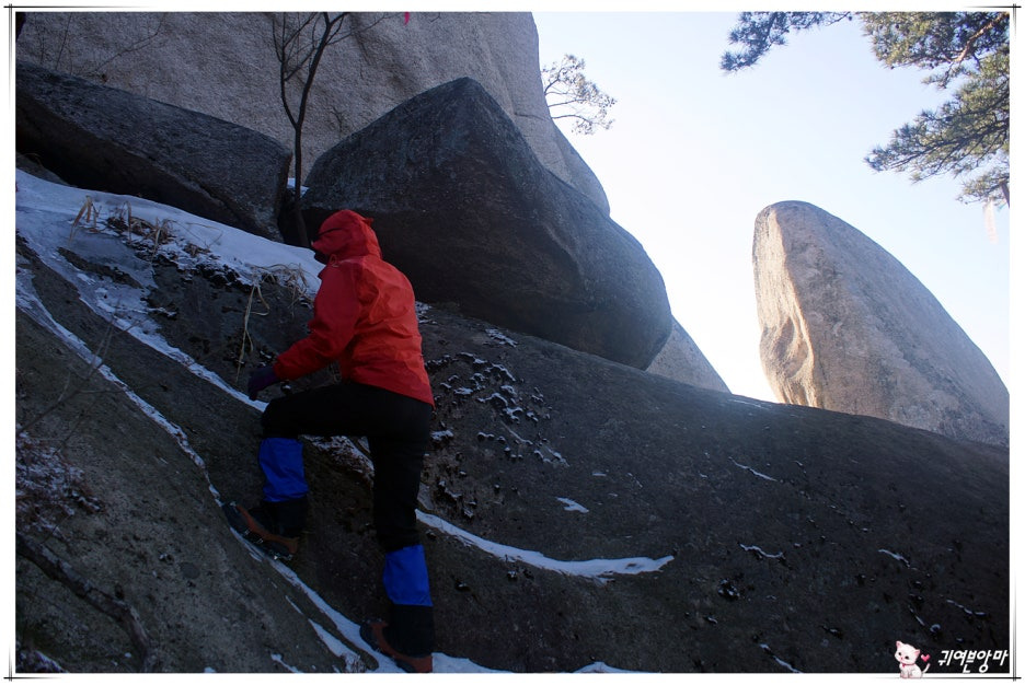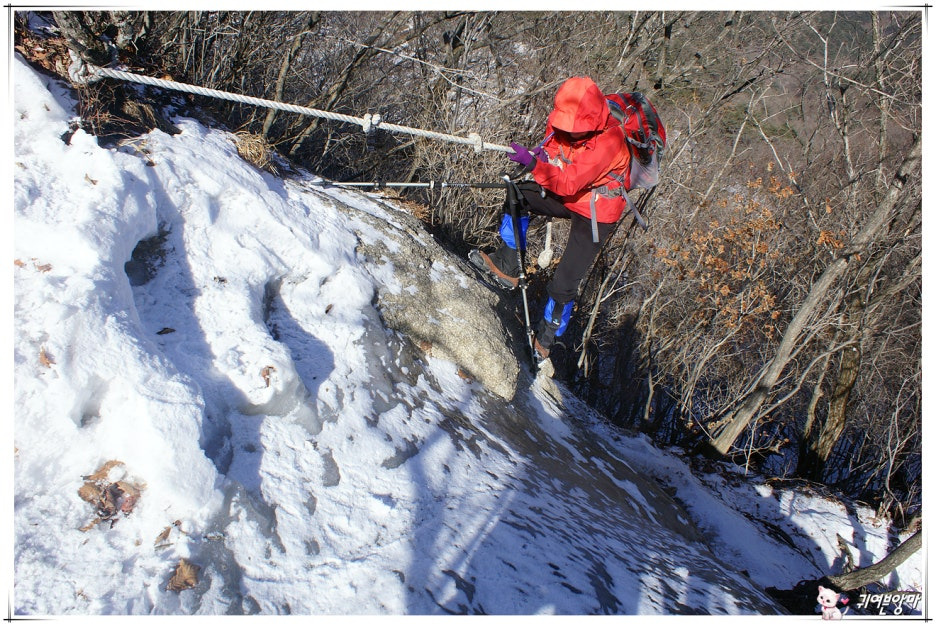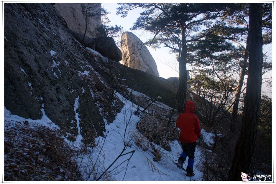 바위사이로 내려갈려니...얼어붙은 빙판이라 무척 까탈스럽네요.