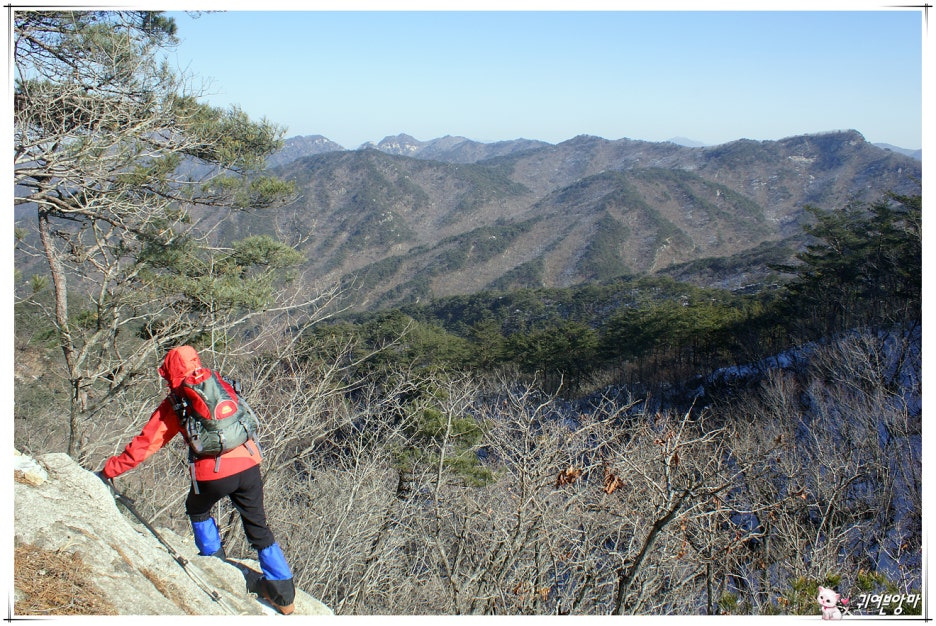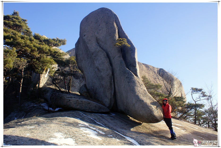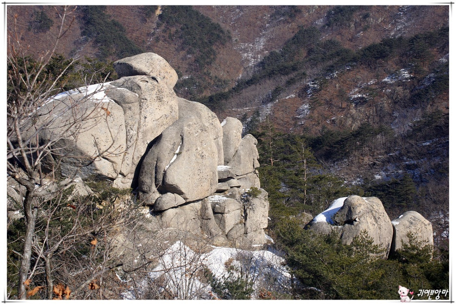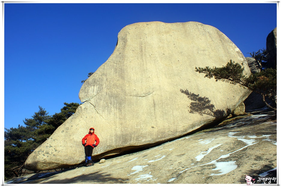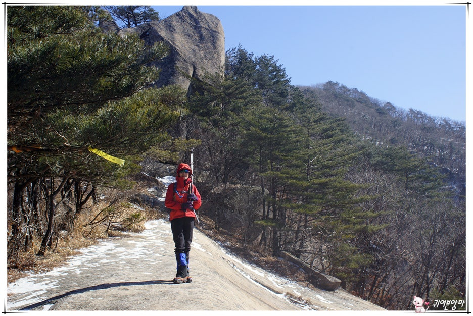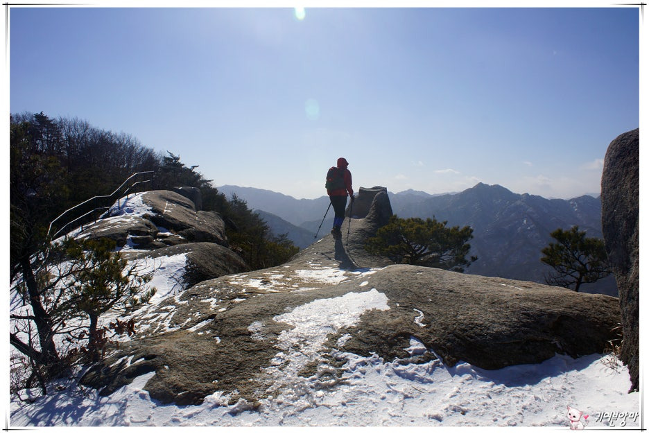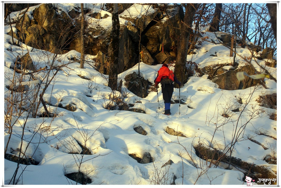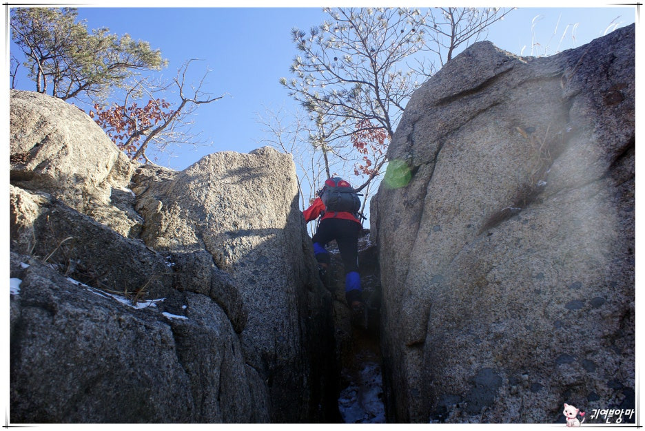 바위사이로 내려갈려니...얼어붙은 빙판이라 무척 까탈스럽네요.