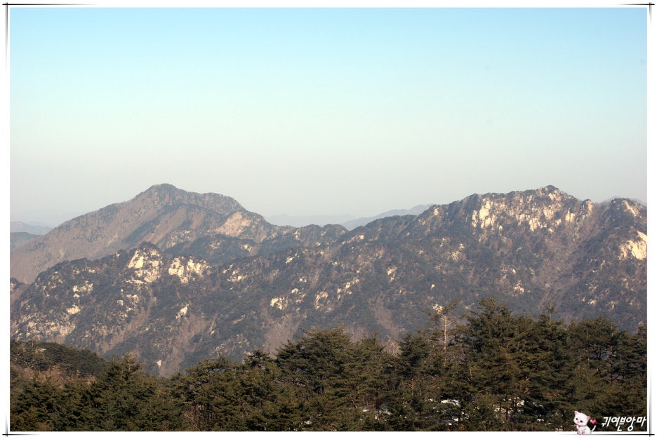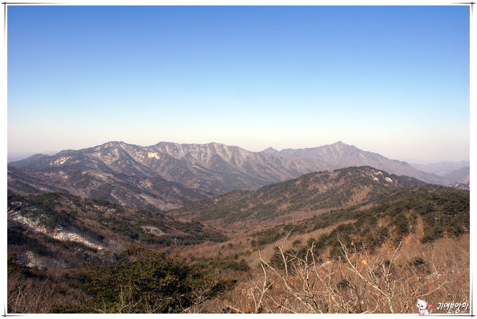 백두대간 능선들 뒤쪽으로...악휘봉도 살짝 보이네요.