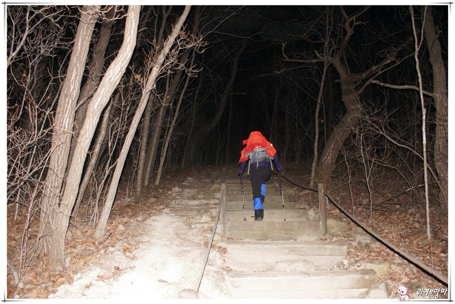근래에 눈이 오질 않아서...들머리 계단길은 늦가을 풍경이네요.