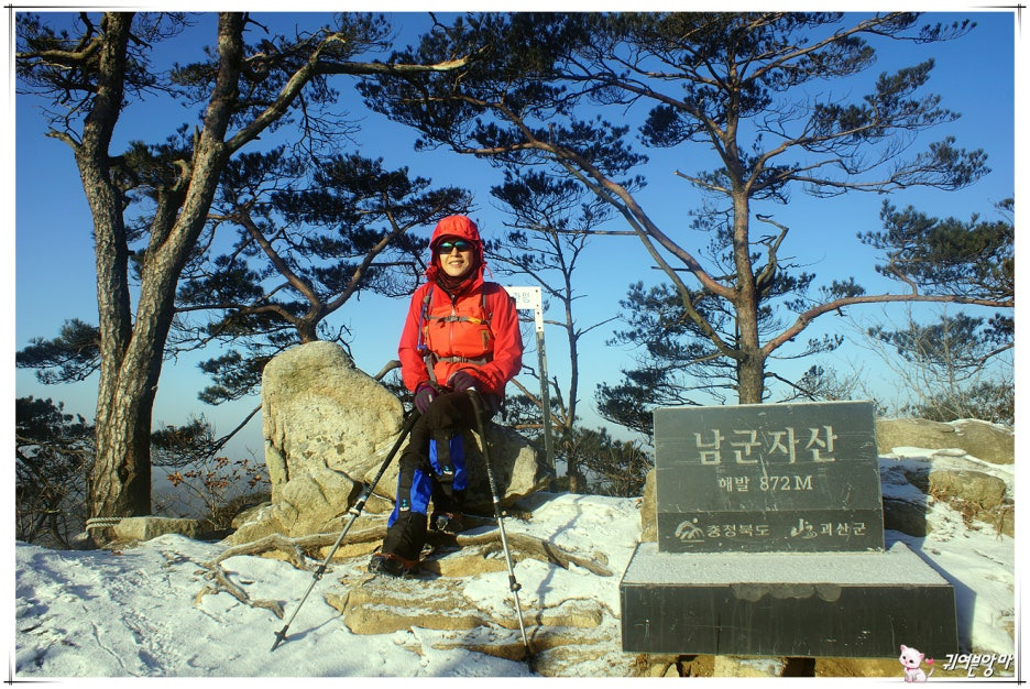 결국 매선 바람을 견디지 못하고 옷을 걸쳐입고...남군자산 정상석을 맞이했습니다.
