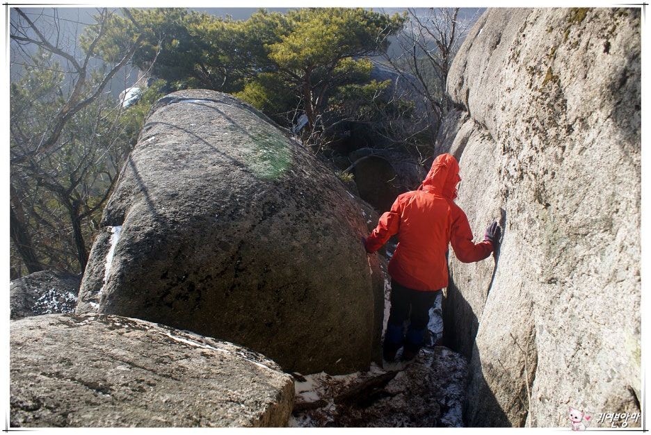 왼쪽으로 편안한 우회길도 보였지만...뒤쪽에 있는 바위를 구경할려고 발자국 따라 따라갔더니....?