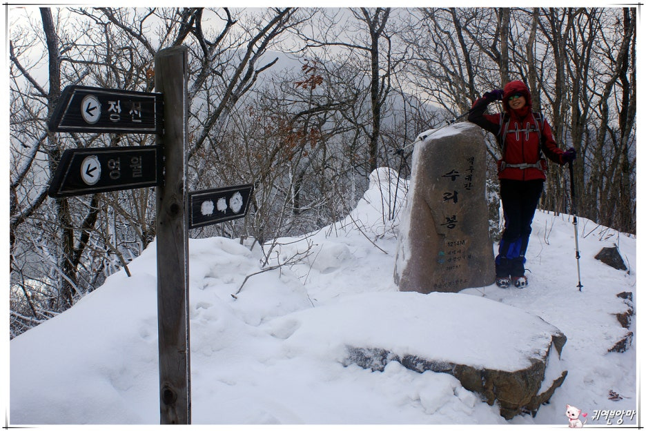 주변을 둘러보며 별 힘듬없이 소문수봉에 올라...가까이 다가갈려니 불어오는 겨울바람에 몸이 휘청입니다.