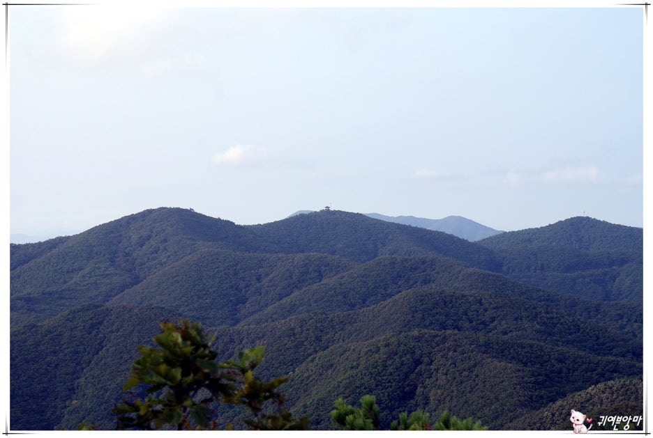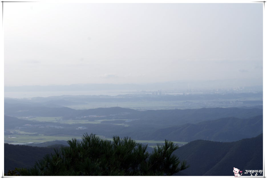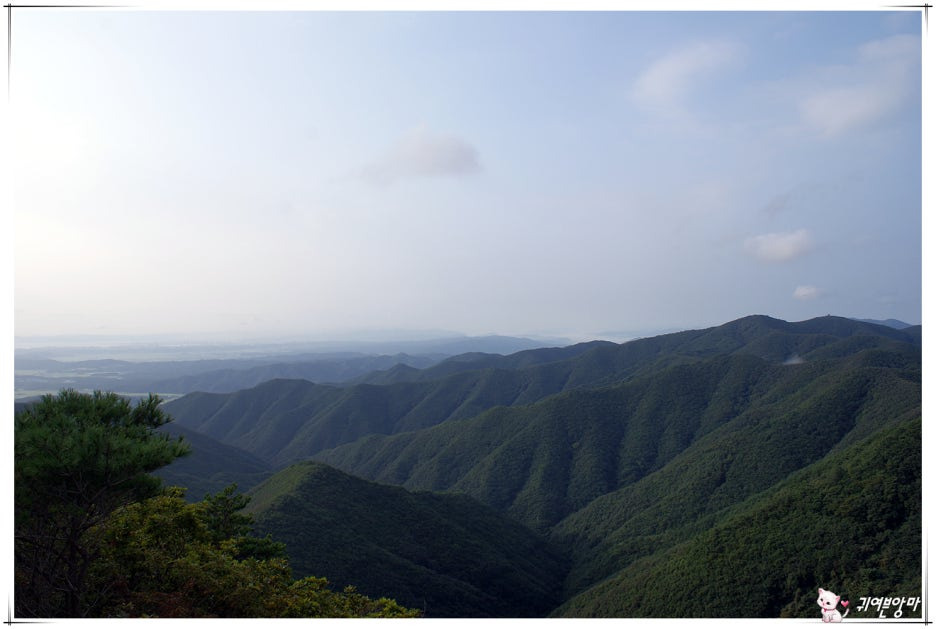 산 능선 뒤쪽 멀리에는...동해바다가 아련하게 보이네요.