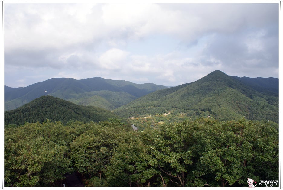 사진 가운데 수목원 전망대가 우뚝하고...그 왼쪽에는 삿갓봉이....