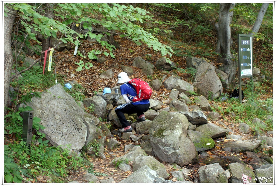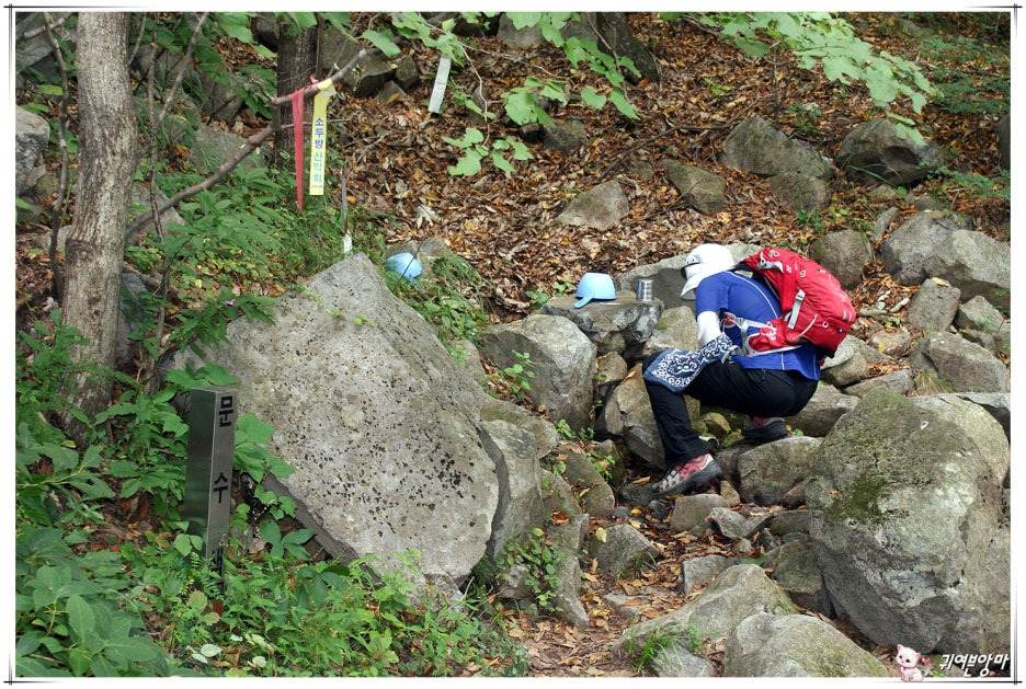 잠시 후, 돌아서 내려오는 등로를 따랐더니...문수샘을 만나고....