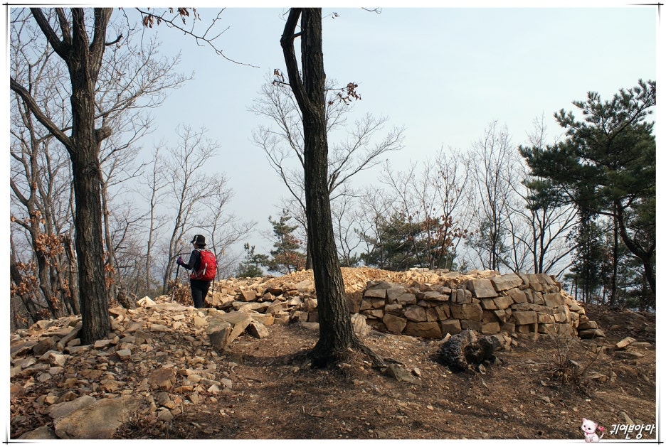 잠시 후, 또 다시 올라선 봉우리 정상...돌 축대가 쌓여있는 곳을 지나치는데....?