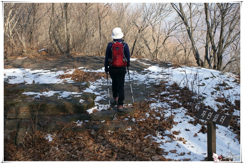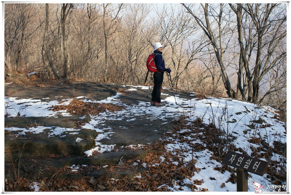 산행 2시간 24분 경과...응달 바닥에 눈이 깔린곳도 있었지만 별 어려움은 없었네요.