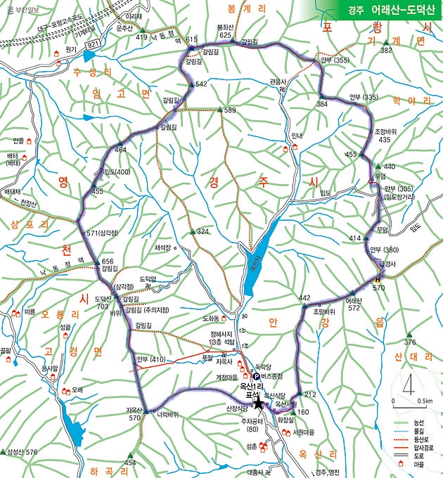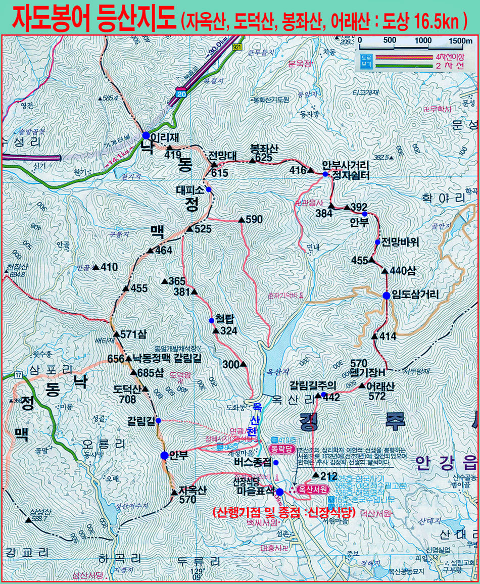이제 어래산 정상에서 옥산서원으로 내려가는...긴 내리막 하산길이 기다리고 있네요.