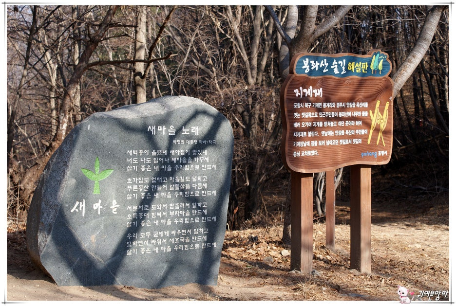 산행 2시간 43분 경과...이곳 지게재엔 새마을노래비가 세워져 있답니다.