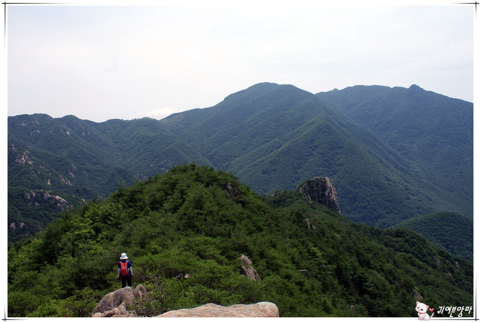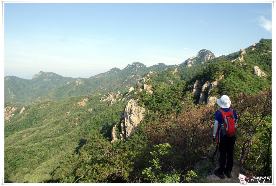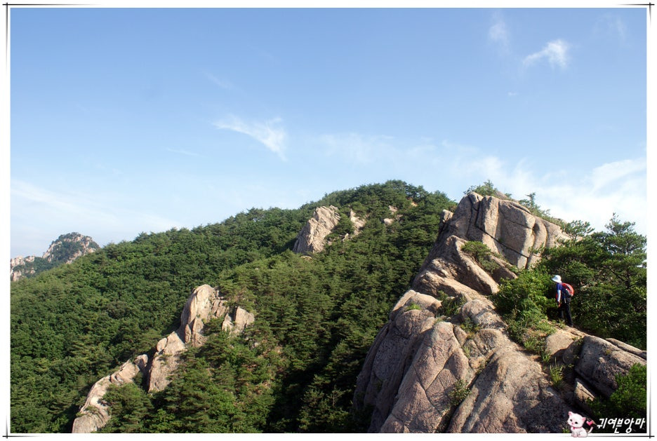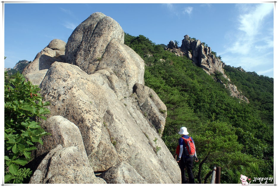 곳곳에서 만나는 기암들과 시원한 숲 사잇길로 이어지는 능선길을...지루한줄 모르고 걸어갔습니다.
