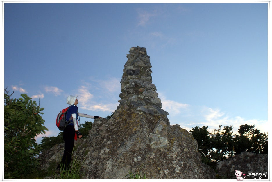 약 1시간 쯤 산길에 올랐을까.?...어렵푸시 돌탑봉이 보이길래 배경으로 사진 한 장 남기는데 까맣게 나왔다고....?