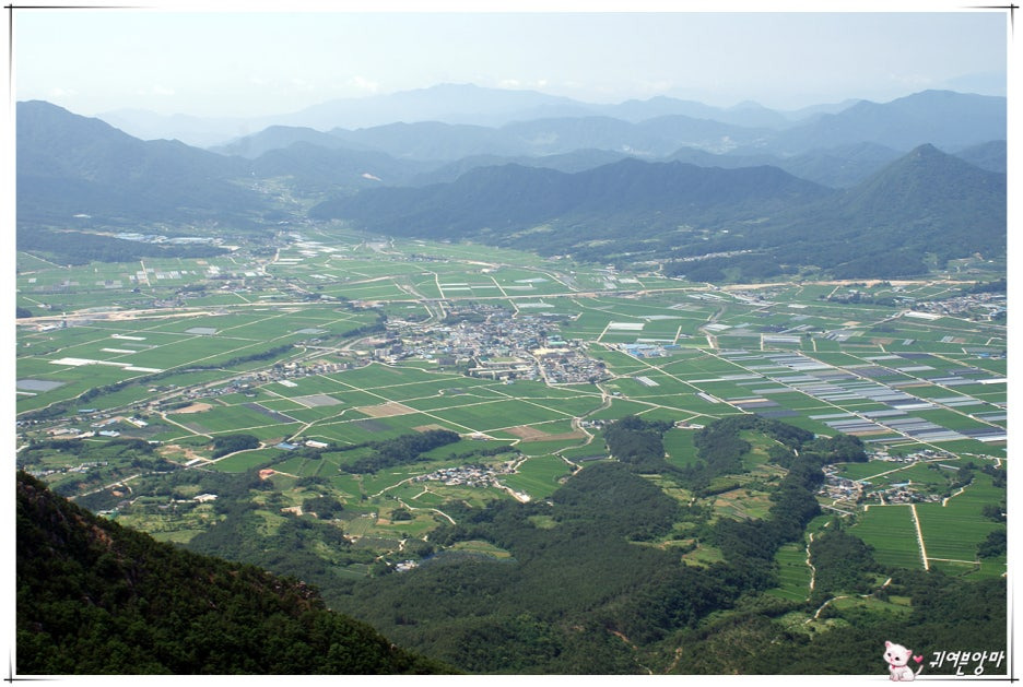 장군봉 정상 바위턱에 올라 발 아래를 내려다 보니...드넓은 가조벌이 한 눈에 시원하게 보이네요.