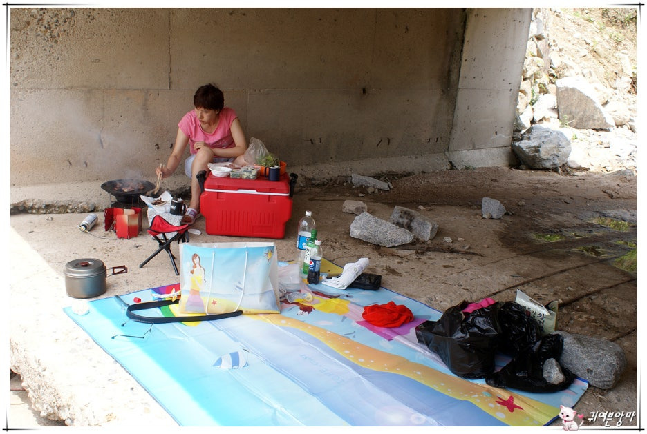 버려진 옛길 계곡 작은 다리 아래에서...배 두드리며 푸짐하게 먹고 마시고....ㅋ