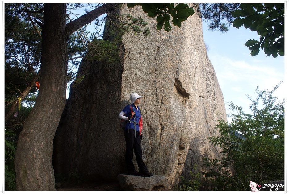 우두산 명물 기암을 앞에 두고...저기 앞쪽 계단길을 예전엔 밧줄잡고 올랐다는데 재미 있었을 것 같네요.
