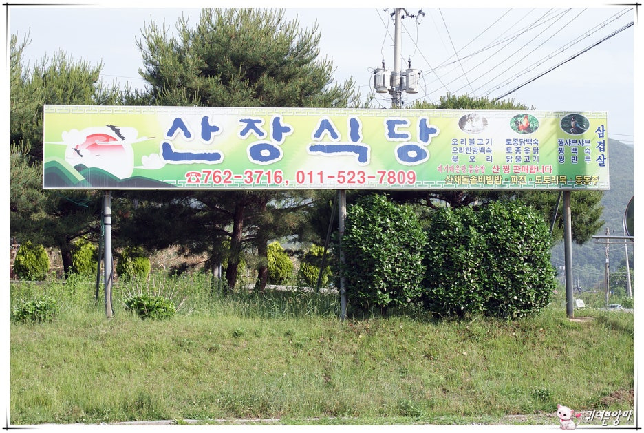 산길 들머리에 있는 산장식당...이 간판 앞쪽에 주차를 하거나....?