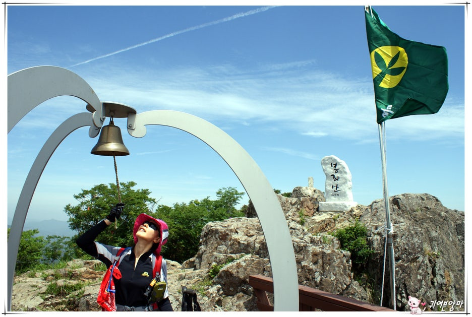 봉좌산 정상석 바로 앞쪽에는...새마을 깃발과 이쁜 종도 매달아 두었네요.