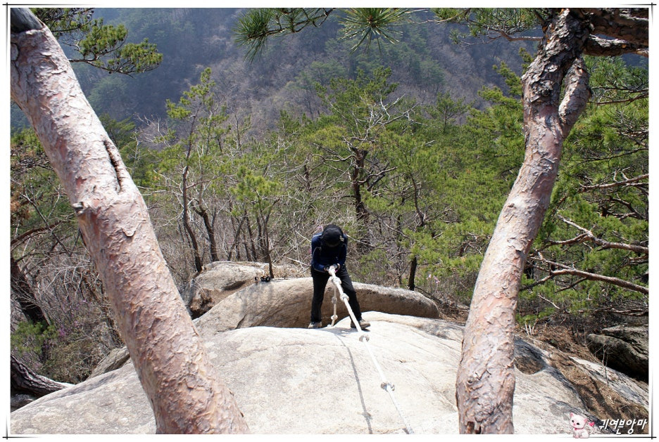 늘어뜨려 놓은 가느다란 밧줄을 꼭 움켜잡고...바위에 바싹붙어서 오르내리기를 수차례....