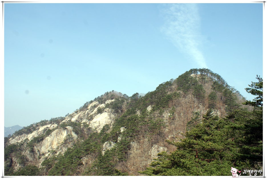 오른쪽 영봉과 왼쪽 주봉...그리고, 관봉(꼬깔봉)은 주봉 뒤쪽에....^^