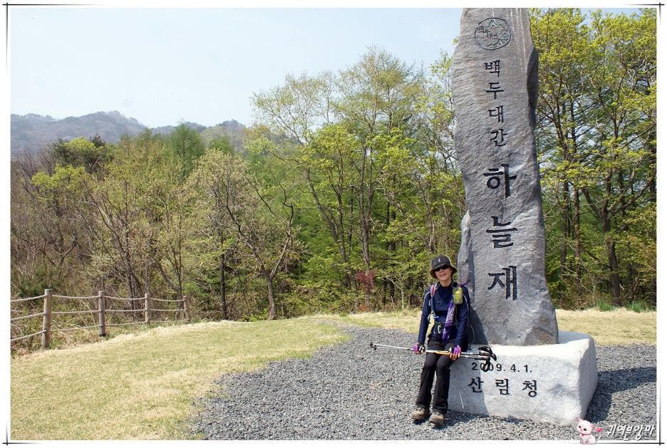 발 아래쪽에는...하늘재 표지석도 조그맣게 보이네요.^^