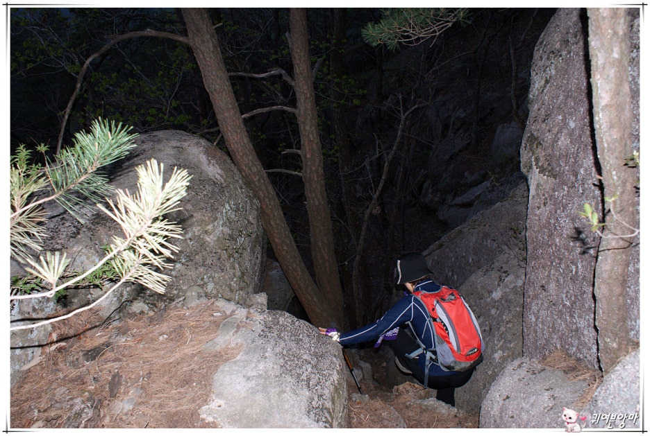 그렇게, 햇님을 떠나보낸 우리는...마지막 암봉 내림길에 마주 섰습니다.
