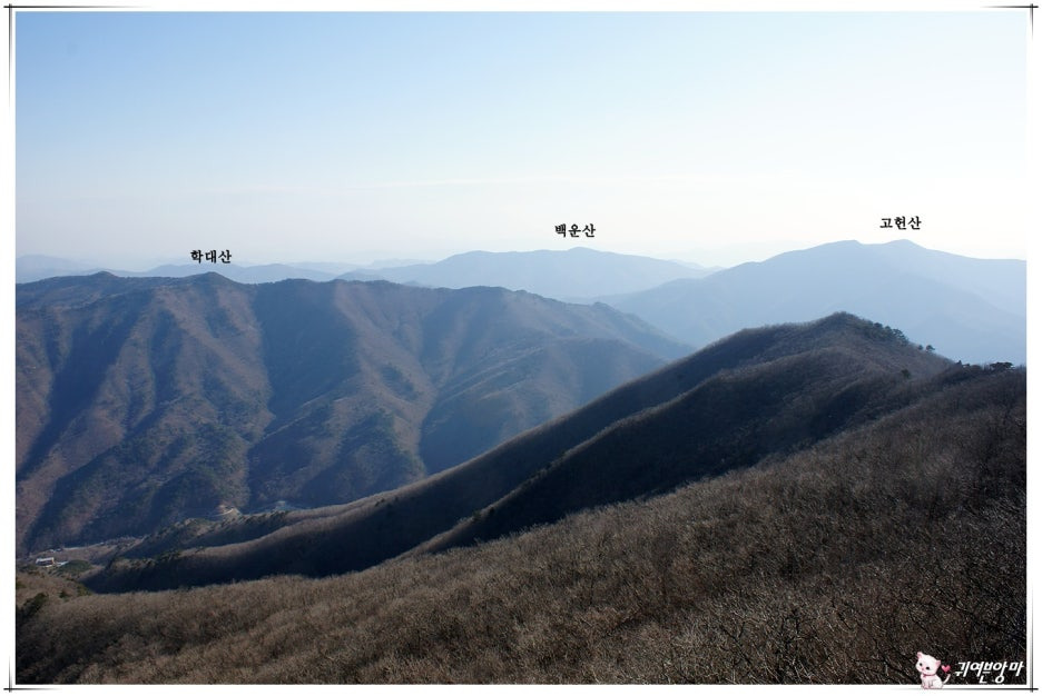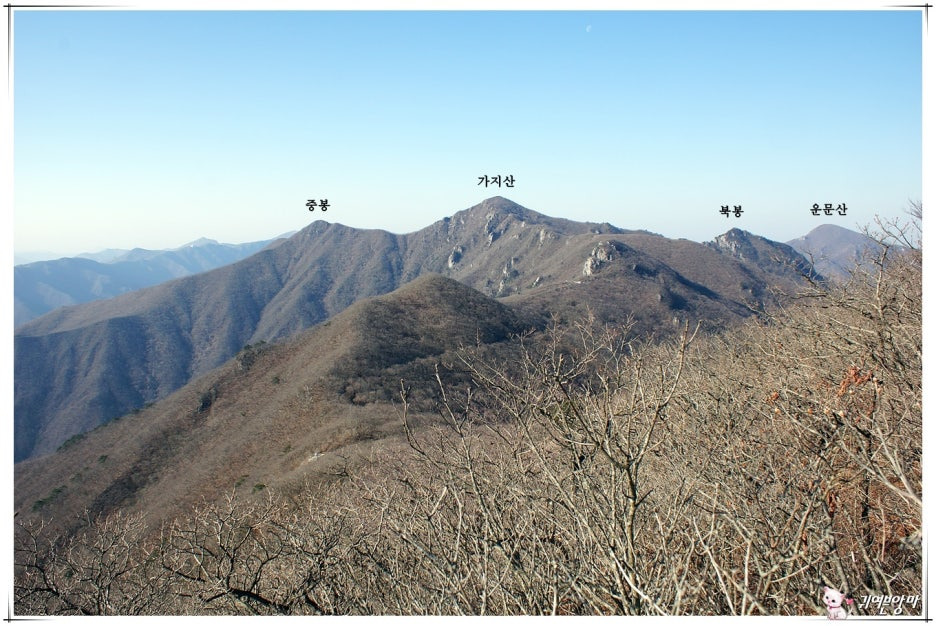 가지산과 운문산...그리고, 흘러내리는 능선 아래쪽 멀리에 화악산도 흐릿하게 보입니다.