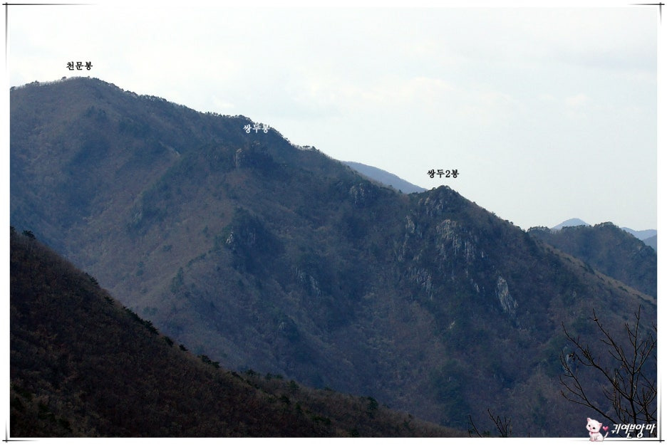 쌍두2봉과 우회길로 돌아서 올라간 쌍두봉...그리고, 그 사이에 전망이 좋았던 바윗길까지 손에 잡힐듯 가까이에 보이네요.