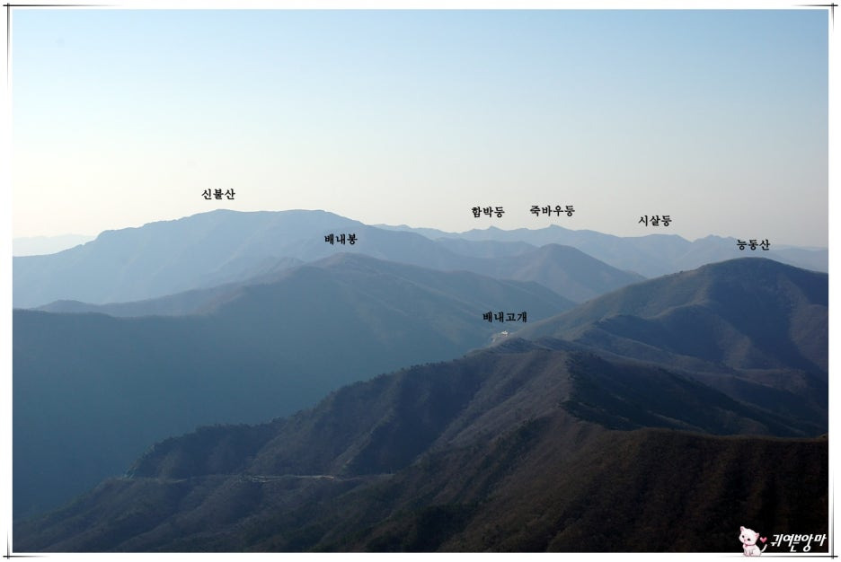 고헌산과 백운산은 우리 뒤를 계속 쫓아오고...작은 능선위에 불송골봉도 볼록하게 보입니다.