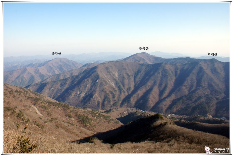 또 다른 능선길은 학대산과 문복산을 거쳐...옹강산으로 가파르게 오르내립니다.