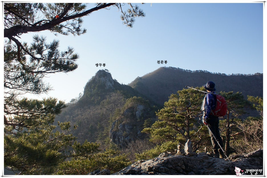 작은 정상석이 자리한 쌍두봉 정상에서 조망을 즐기지도 못하고...서둘러 내려와 천문봉이 있는 건너쪽으로 올라갔네요.