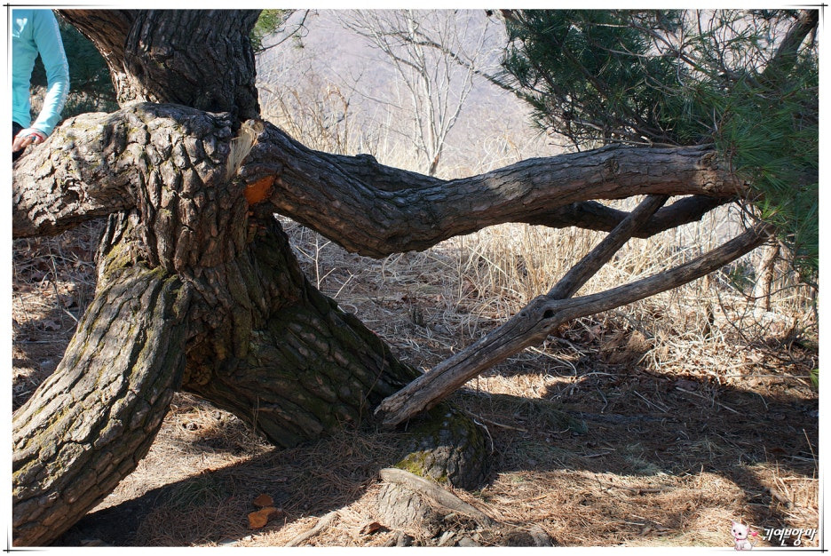 부러진 소나무 가지를 외면한 단체 산객분들은...반대쪽 가지에 줄지어 걸터앉아 사진 남기느라 분주합니다.