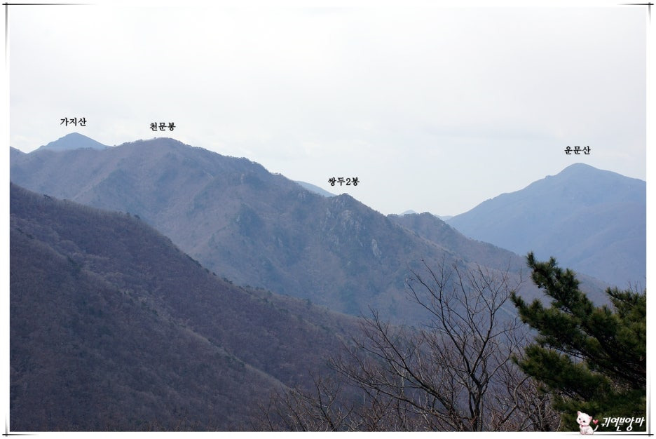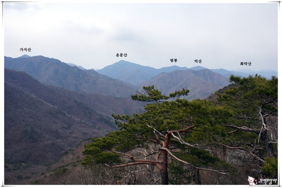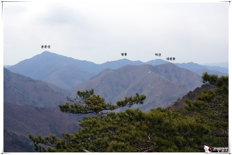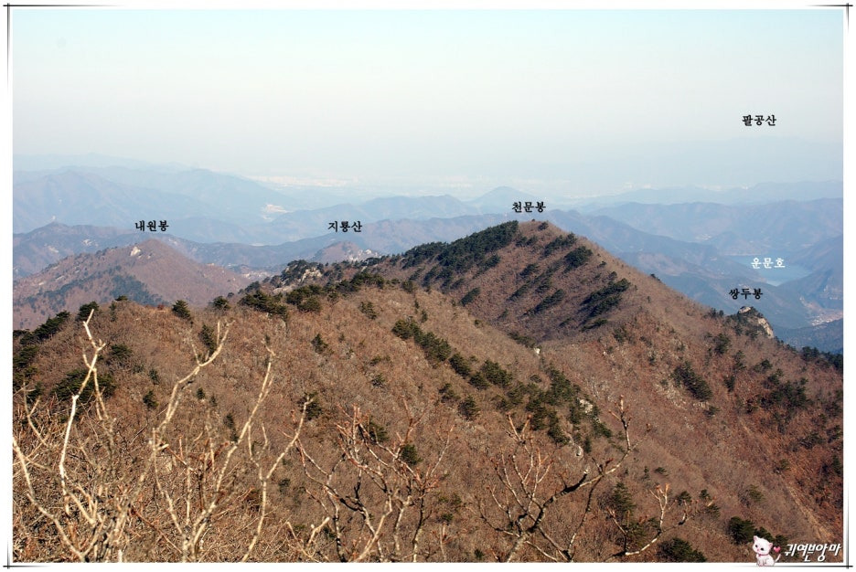 내원봉과 지룡산...운문호 멀리에는 팔공산까지 흐릿하게 보입니다.