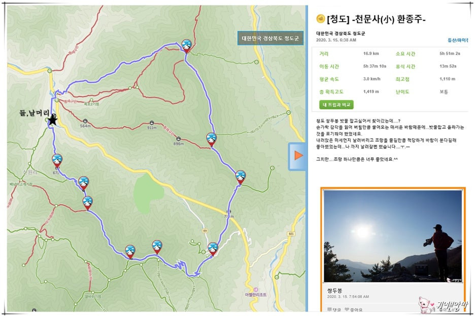 램블러에 찍힌...[청도] -천문사(小) 환종주- 발자국 지도