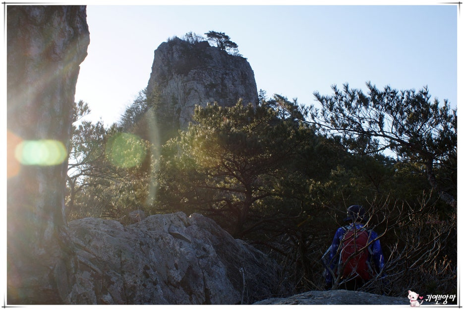 바위 봉우리위에 돌탑이 오똑한 귀바위를 만나고...한걸음에 올라갔습니다.