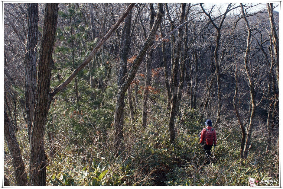 따뜻한 햇살아래 얼굴과 손가락을 녹여가며...완만하게 오르내리는 산죽 사잇길따라 상운산 정상으로 올라갔습니다.