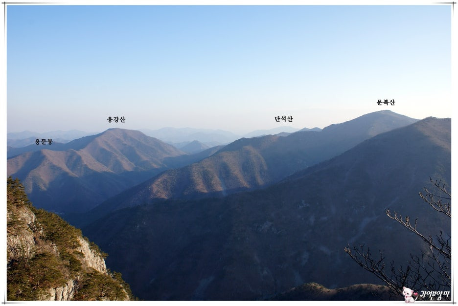 오른쪽에는 문복산과 옹강산...멀리에는 단석산도 흐릿하게 보이네요.