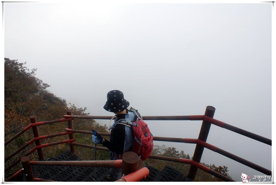 아래쪽에서 깨끗하게 올려다 보이던 조망도...점점 올라갈수록 운무가 덮어버려 주변이 온통 하얗게만 보이네요.