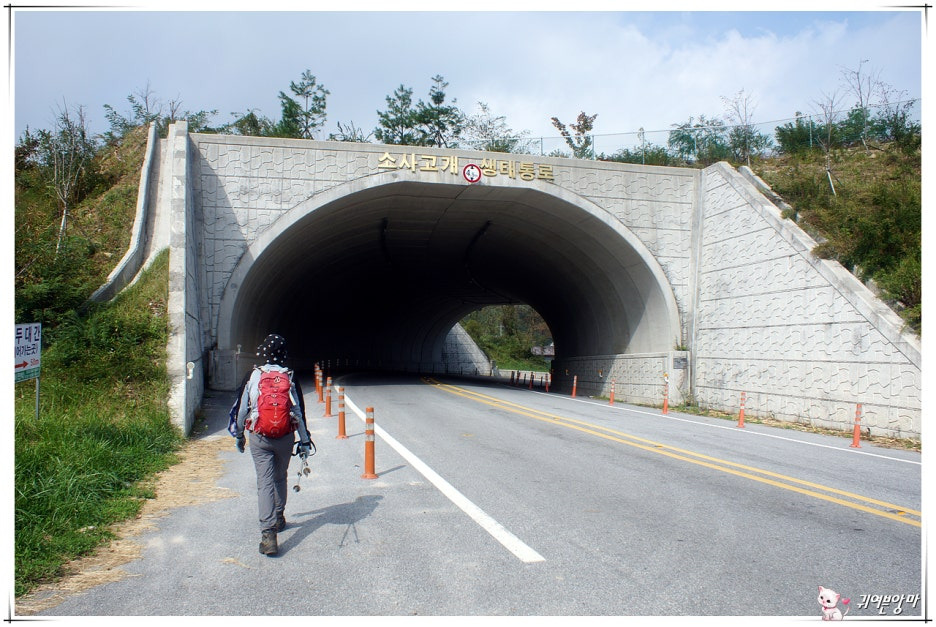 도로 조금 아래쪽으로 내려서서...소사고개 생태통로가 있는 고갯마루로 올라갔습니다.