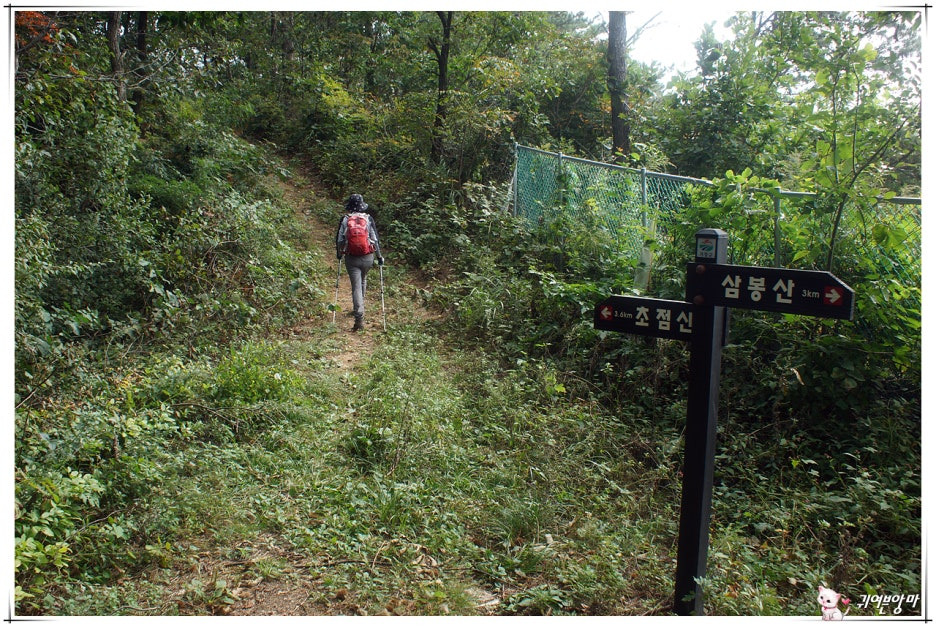 그렇게, 산길 들머리를 찾아갔더니...입구에 세워놓은 안내판엔 삼봉산 정상까지 거리가 9.7km....