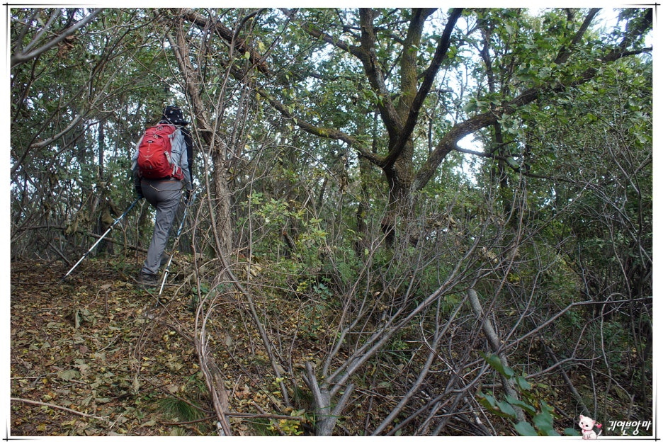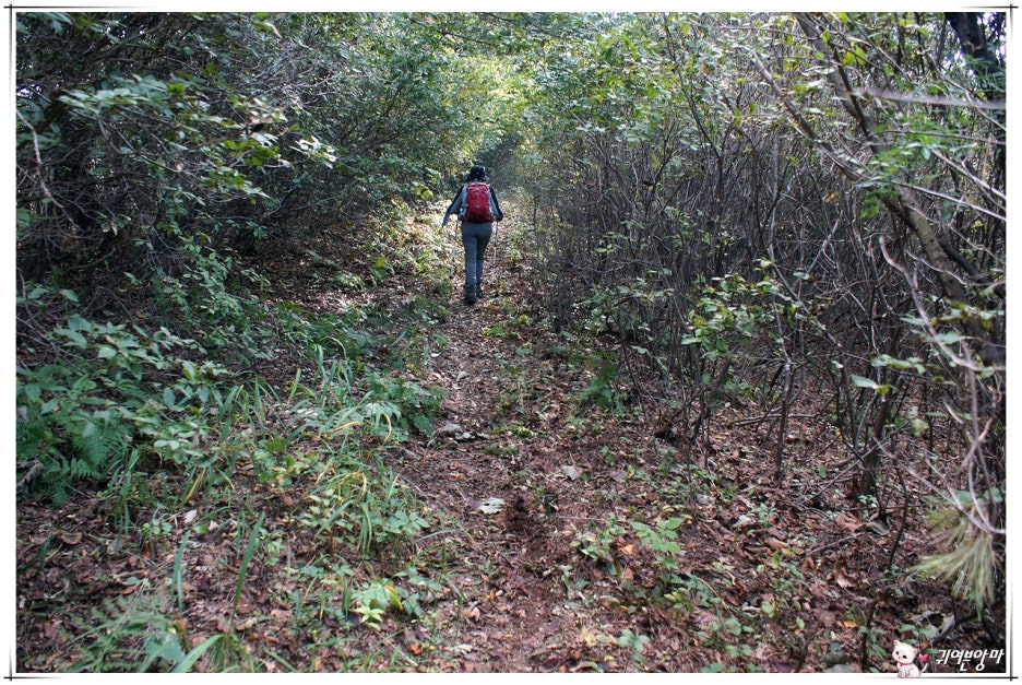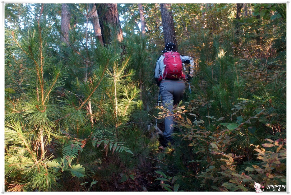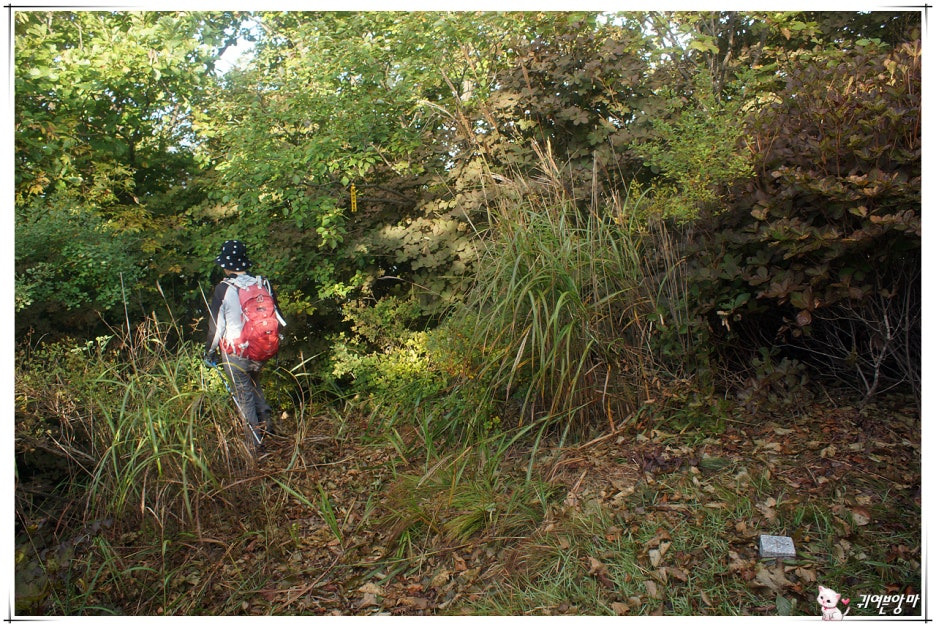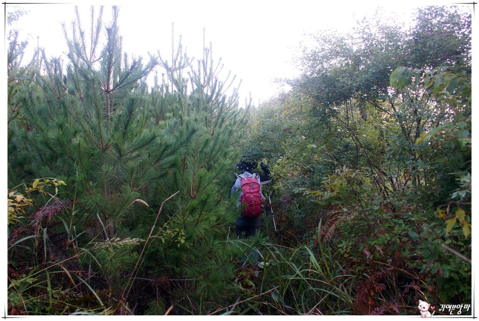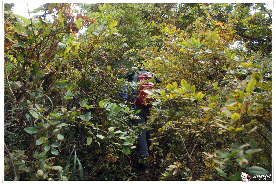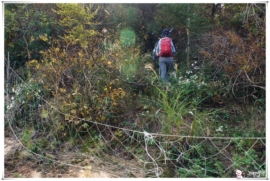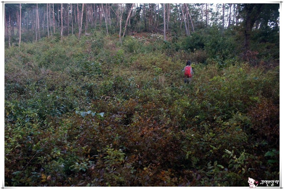 아래쪽엔 벌목을 했었는지 큰 나무들은 보이지않고...햇살 좋은 자리엔 가시넝쿨과 잡풀들이 등로를 다 덮어 버렸더군요.