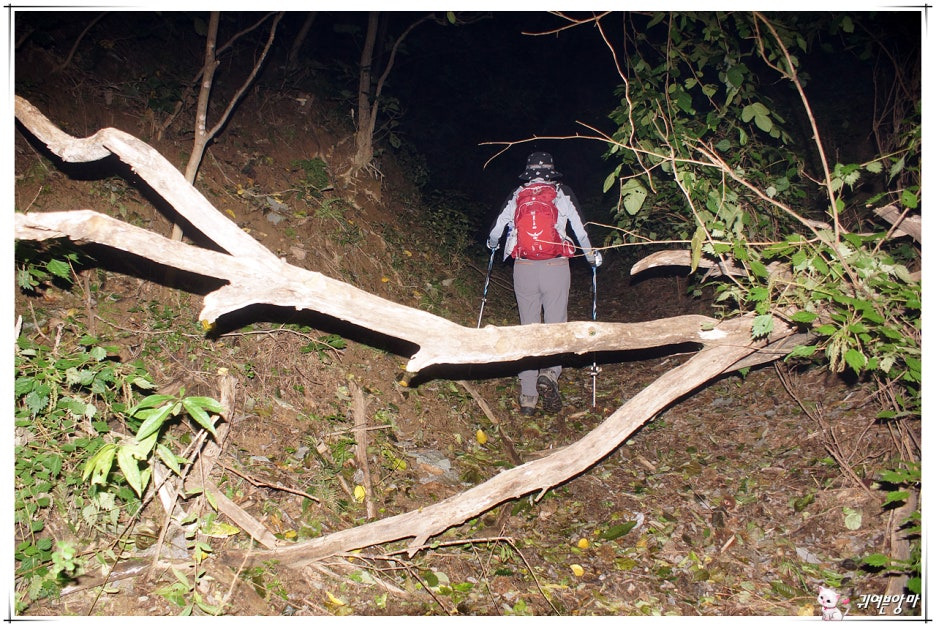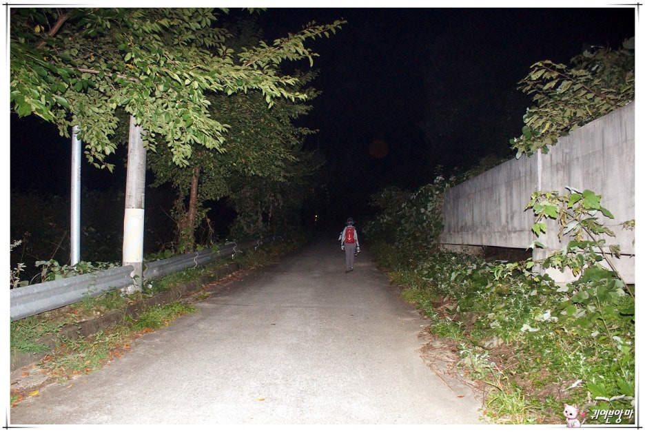 저수지 물소리를 뒤로하고 짙은 어둠이 깃든 산길에 들어서는데...산길 입구부터 심상치 않습니다.