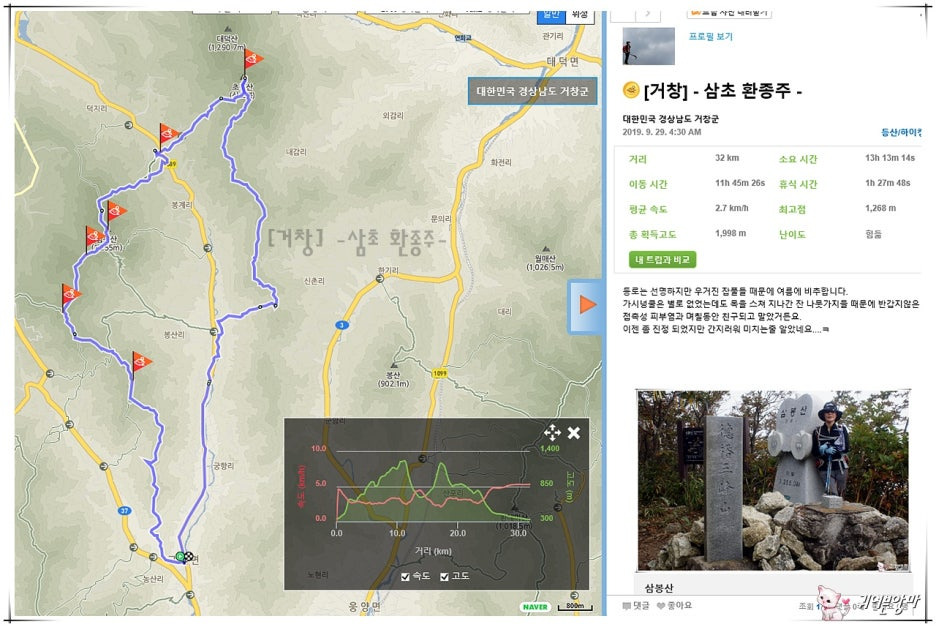 [거창] -삼초 환종주- 거리 및 고도표