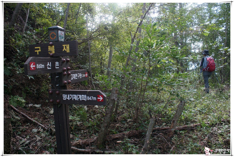 우린 이 곳에서 계속 진행할지 말지를 잠시 망설이고 있는데...한 쪽에 '곰내미둘레길'이란 조금은 오래된 펼침막이 보이네요.