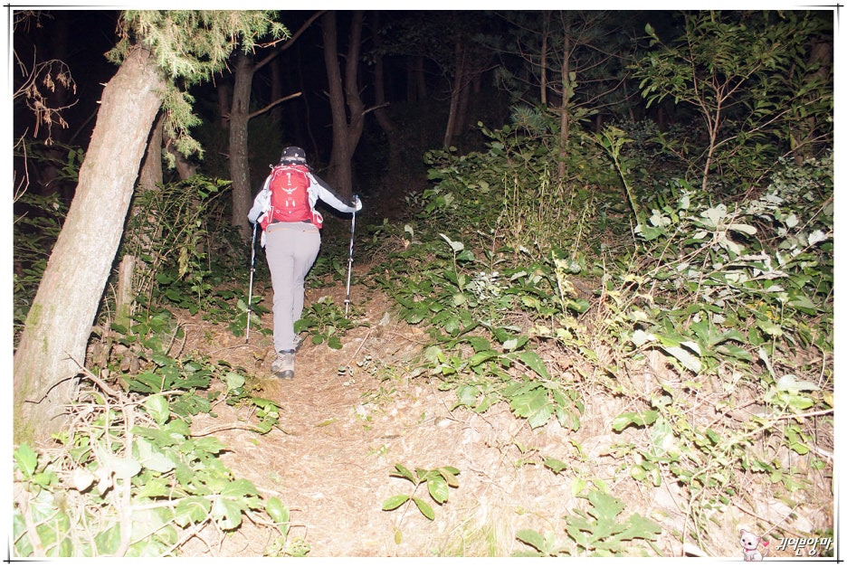이마에 훤하게 불 밝히고...산길 들머리를 찾아갔습니다.