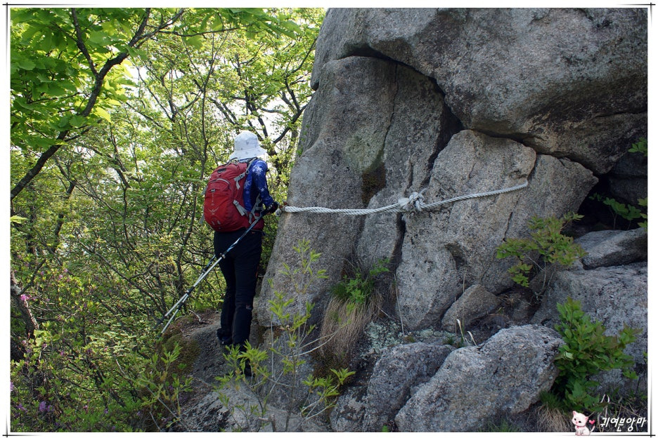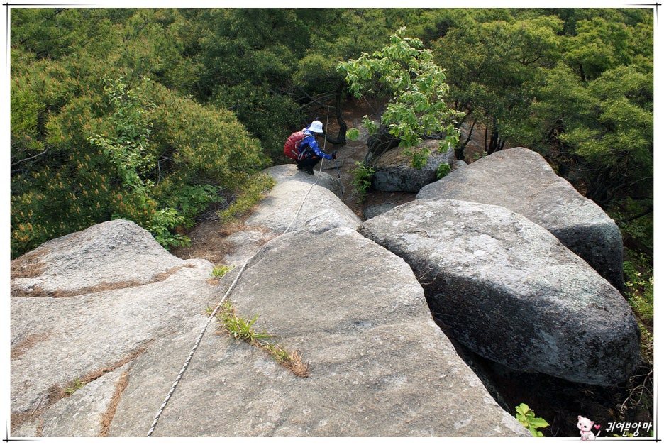 밧줄까지 매달아놓은 바윗길을 조심스럽게 내려가서...우릴 기다리고 있을 요령봉에 빠르게 다가갔습니다.